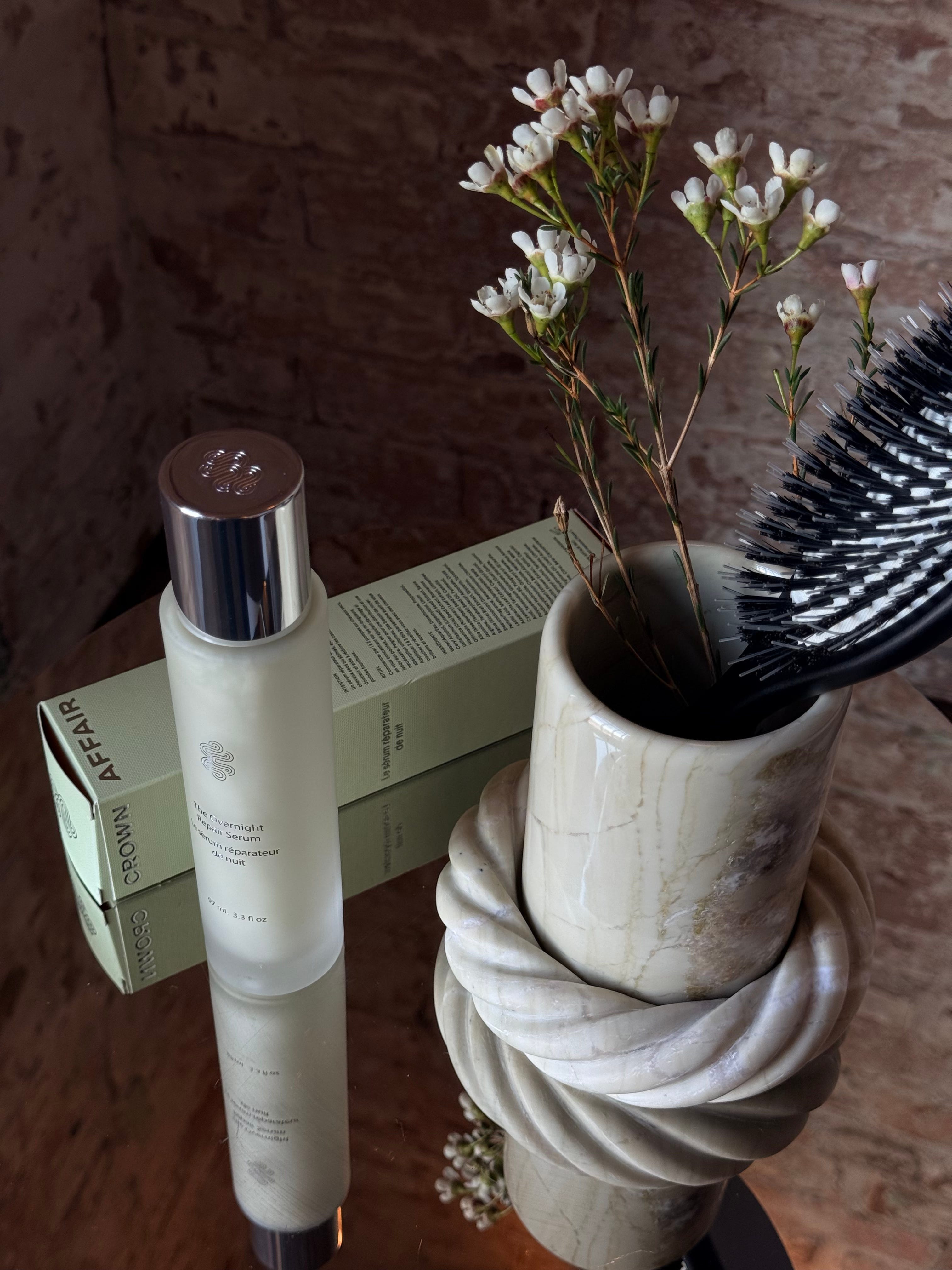This past January, we designed a hand-carved stone cup and saucer for Crown Affair’s ritual overnight serum launch. Thick, satin-polished, muted in tone, heavy enough to slow the hand that held it. Each piece took long hours of hand labor at our atelier in Rajasthan — a lot of hands, real hours, real human skill embedded in the object. The set sold out across Crown Affair and Goop in record time despite premium pricing. What buyers felt when the object arrived was density. The particular weight of a thing made slowly, by a human hand, and challenging to find on the market, perhaps for its perceived frivolousness. Crown Affair has coined the ritual positioning more successfully than any brand in the last five years because they have never once confused the mood for the mechanism. Dianna Cohen understands — at the level of muscle memory — that the job of a ritual object is to do something to the body and the mind, not only to look like something on a shelf.