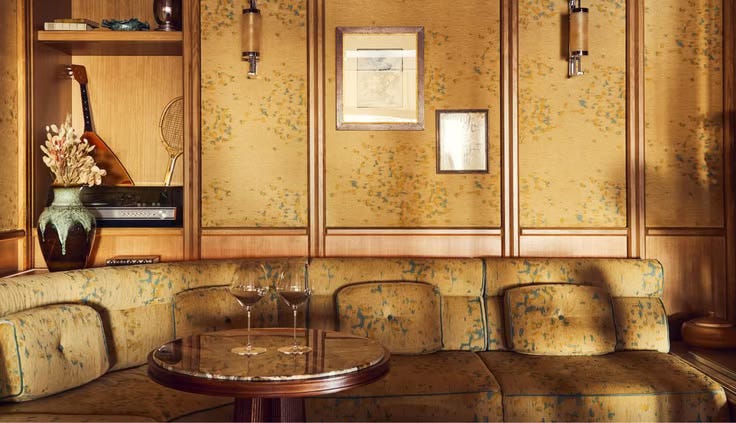Walk into a hotel, members club, or bar that has opened in a major city in the last ten years, and you’ll find the space is color-drenched in saturated, muted tones like chocolate, oxblood, smoke, moss, ochre. The upholstery inside is substantive: boucle, mohair, velvet, thick enough to float you safely across the Hudson with Captain Sully. The light is low, the art is big and original, or looks original. The music volume sits just right, below conversation.